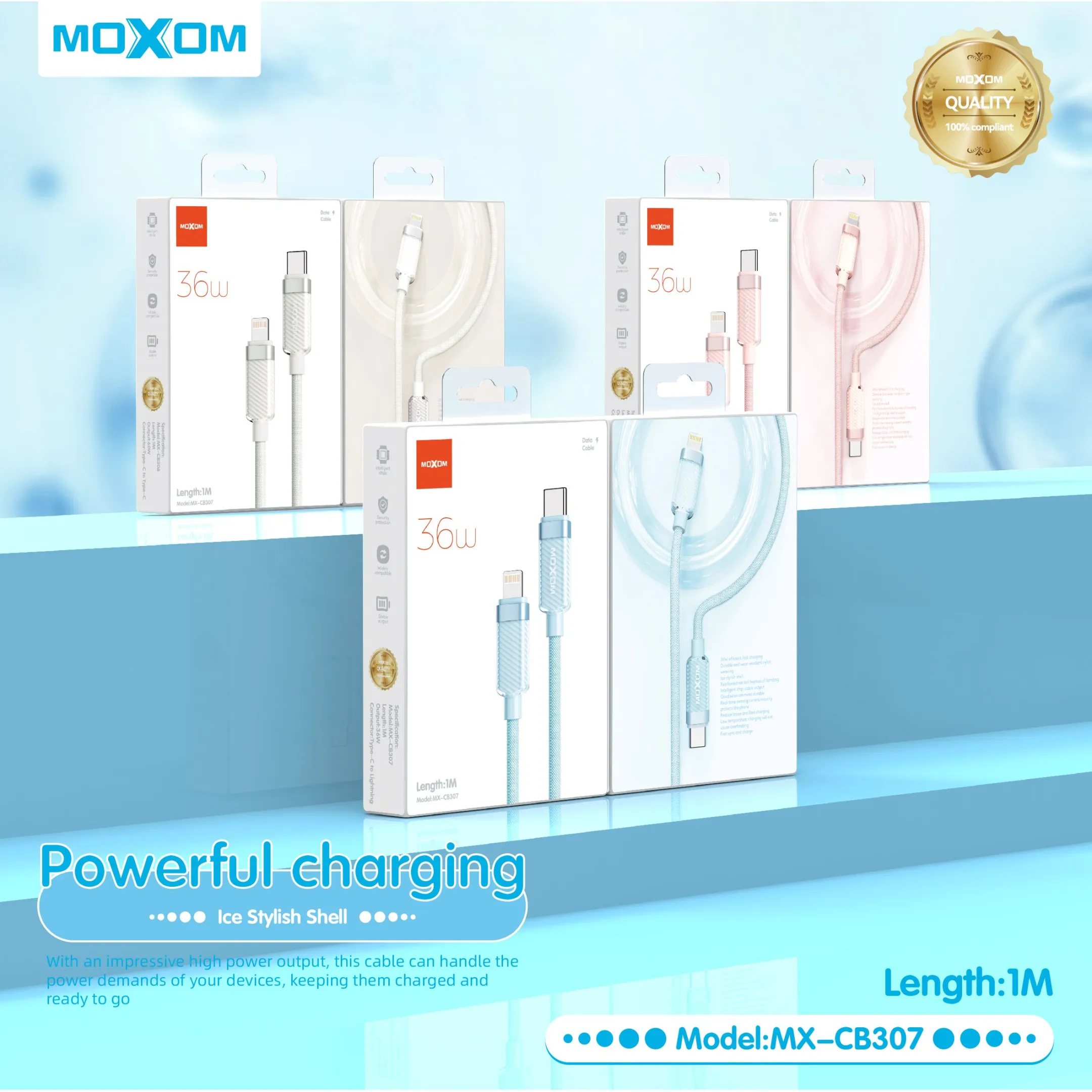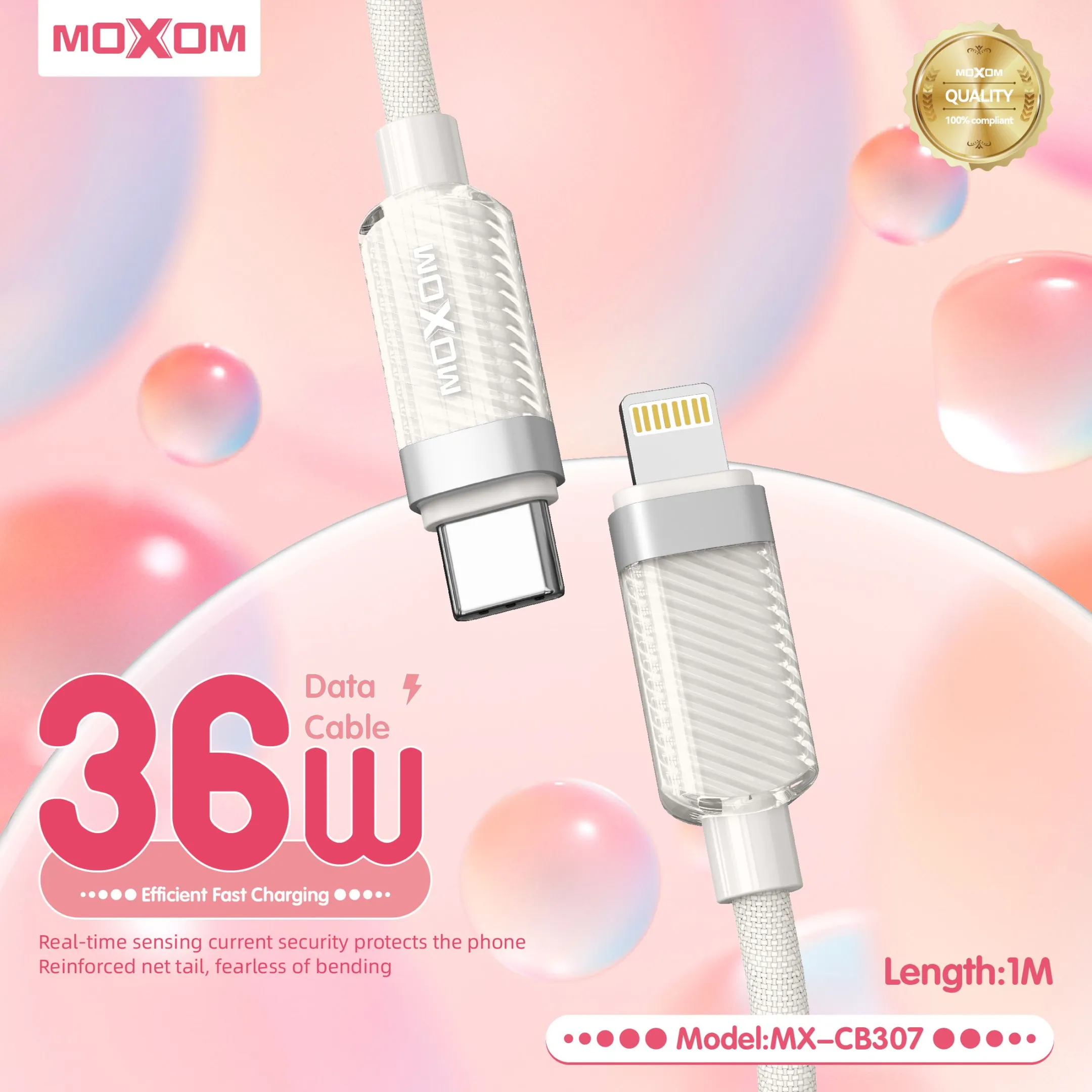 MOXOM MX-CB307 supports fast charging and reliable data transfer for Apple devices. This product is designed for reliability, durability, and everyday performance. It supports modern devices, offers stable functionality, and is suitable for both personal and professional use. Built with quality materials, it ensures long-term usage while maintaining efficiency, safety, and convenience for users.