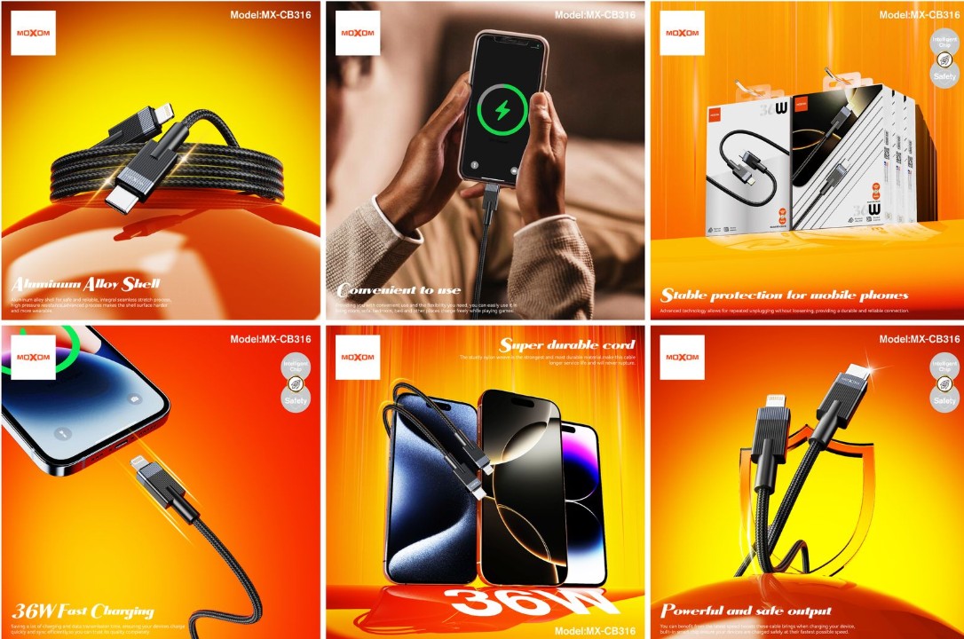 The MOXOM MX-CB316 provides 36W fast charging for Apple devices, ensuring quick and efficient power delivery. Built for durability, it’s ideal for daily use.