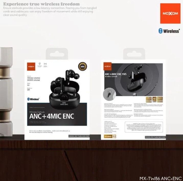The MOXOM MX-TW86 earbuds feature advanced ANC and 4-microphone ENC technology for superior sound clarity and noise reduction. Designed for premium audio performance, they provide immersive listening and crystal-clear calls in any environment.