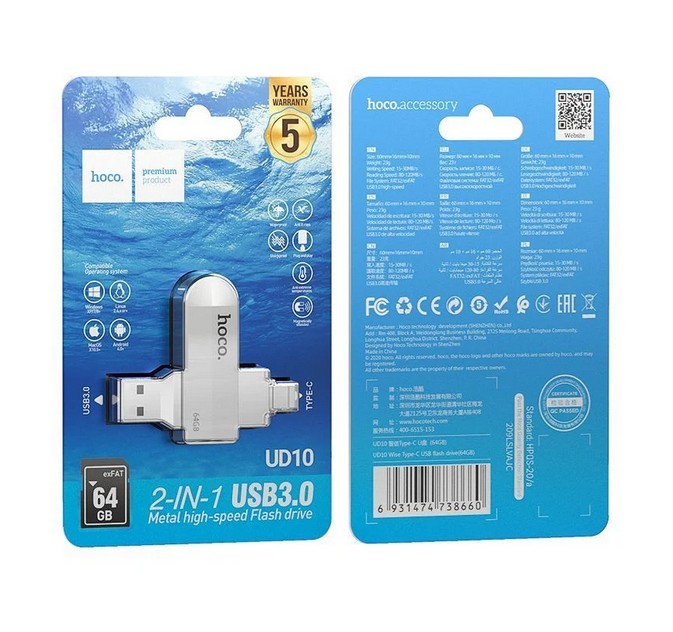 The HOCO UD10 Wise 64GB USB flash drive provides reliable storage and fast data transfer for everyday use. With a Type-C interface and compact design, it ensures easy file management across multiple devices.