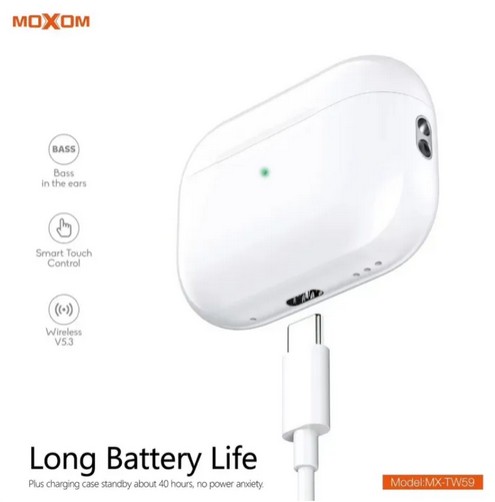 The MOXOM MX-TW59 TWS wireless earbuds deliver high-quality sound with stable Bluetooth connectivity and a comfortable ergonomic design. Built for everyday use, these earbuds provide clear audio, reliable performance, and long battery life, making them ideal for music, calls, and on-the-go convenience.