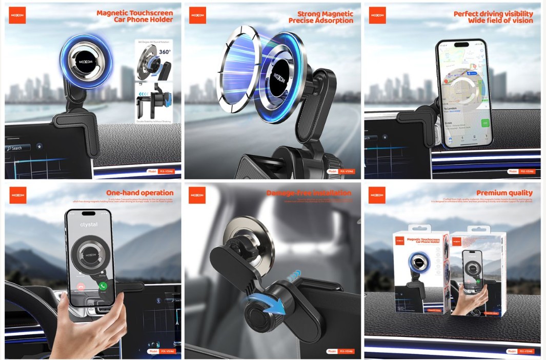 Magnetic car phone holder designed for easy mounting and quick access to your smartphone while driving.